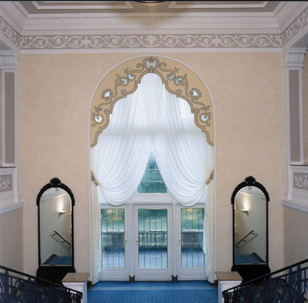 Die fertigen Gardinen im Treppenhaus
